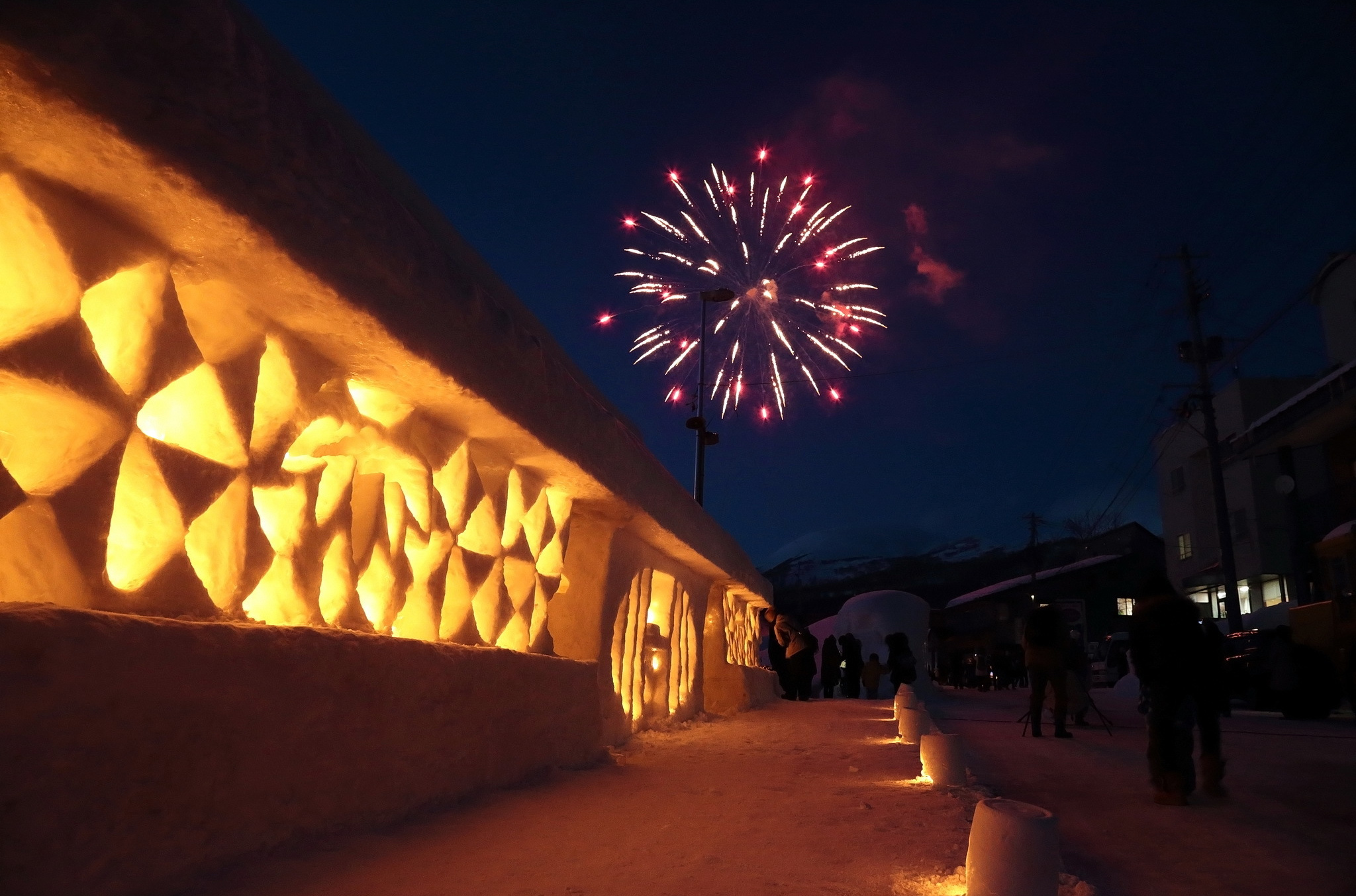 雪原と冬空の月、無数のろうそくが放つ柔らかな灯。一晩限りの美しい光景です!